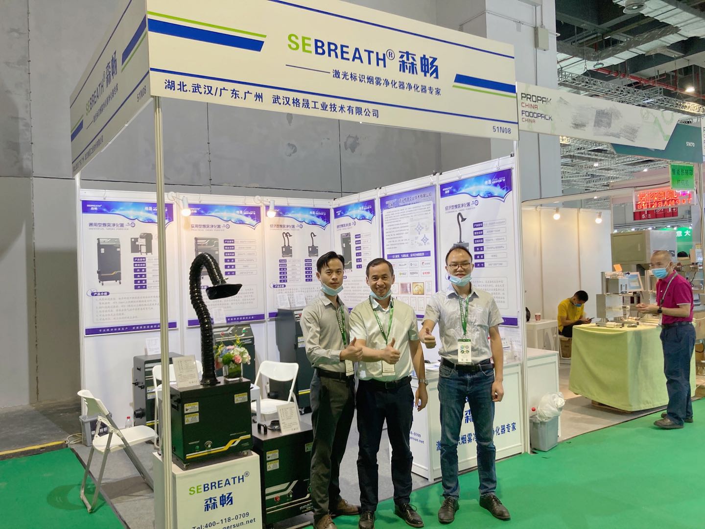 武漢格晟工業技術有限公司作為工業煙塵煙霧廢氣處理成套設備供應商,攜森暢SEBREATH品牌各種激光作業煙霧凈化器產品參加了此次展會。展會上我們以積極飽滿的工作熱情,專業的技術知識為每一位來賓耐心進行公司產品講解,得到了眾多客戶的肯定與認可。