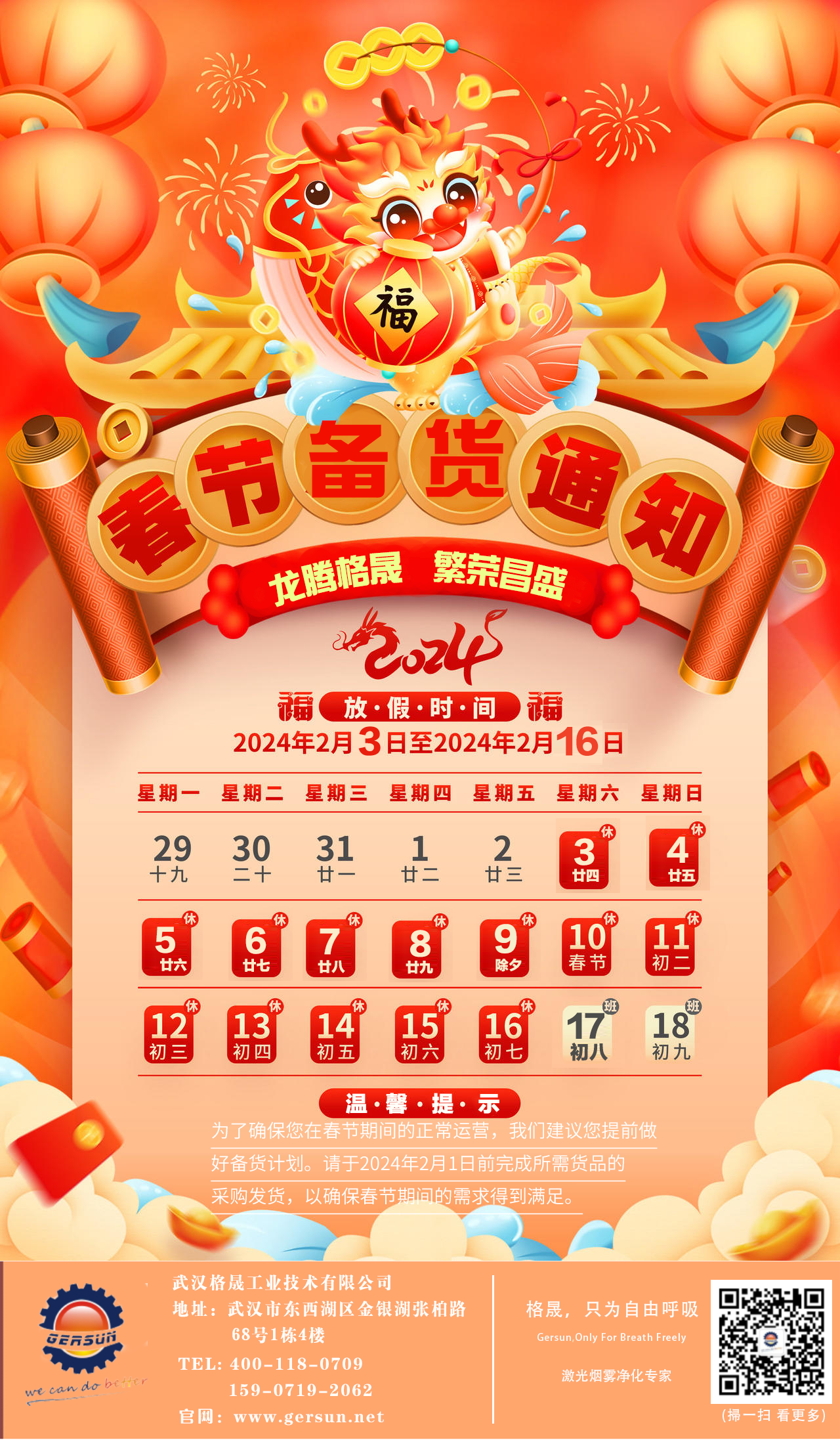 武漢格晟2024年春節(jié)備貨通知